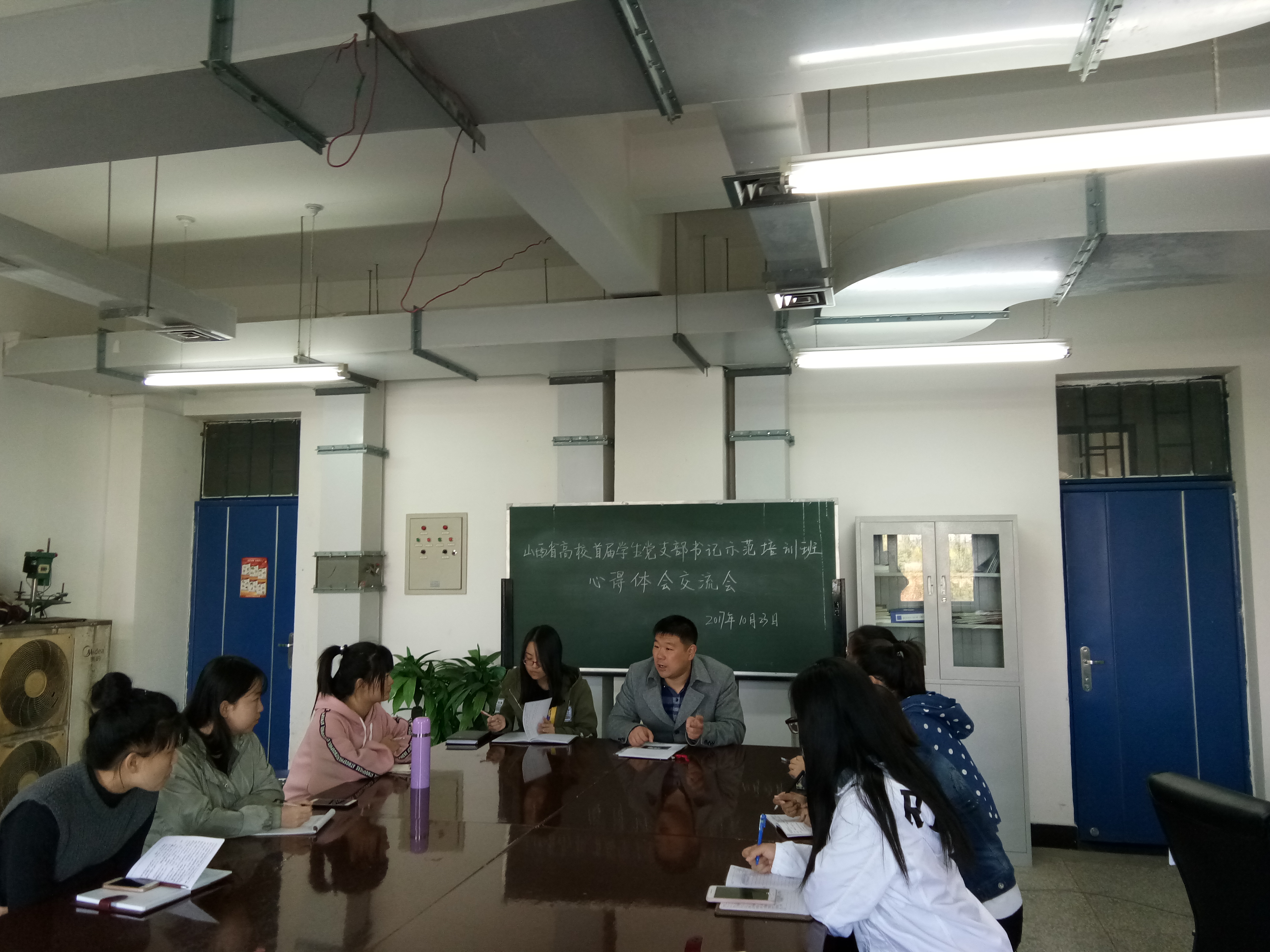 2017年10月23日上午10:00,基础医学系学生党支部组织全体党员在基础医学系会议室召开了以“山西高校首届学生党支部书记示范培训班心得体会交流”为主题的心得体会交流会。党支部书记宋国斌老师主持会议并做专题发言,预备党员袁玉霞、于洋,本学期预发展对象和预重点培养对象等参加了心得交流会。