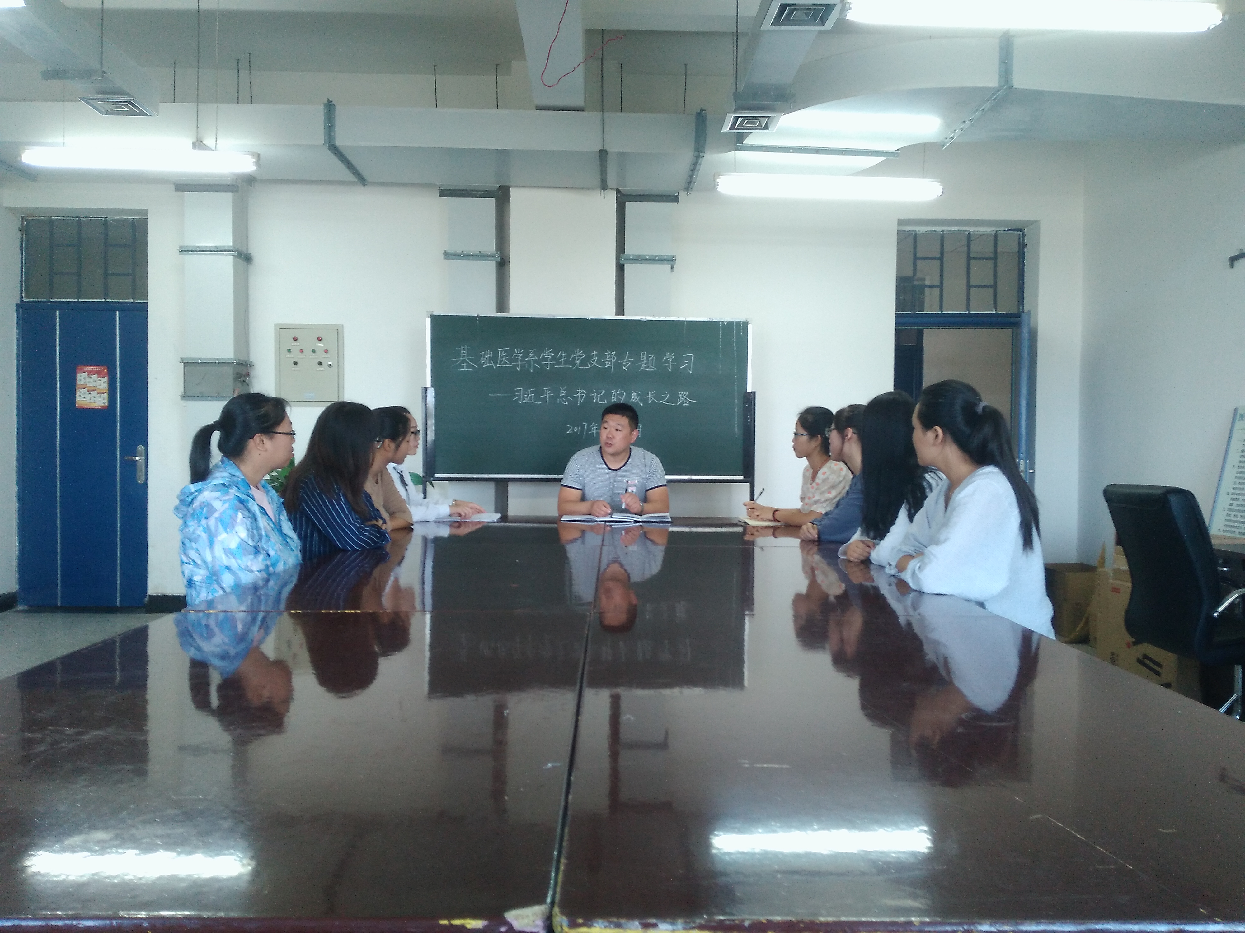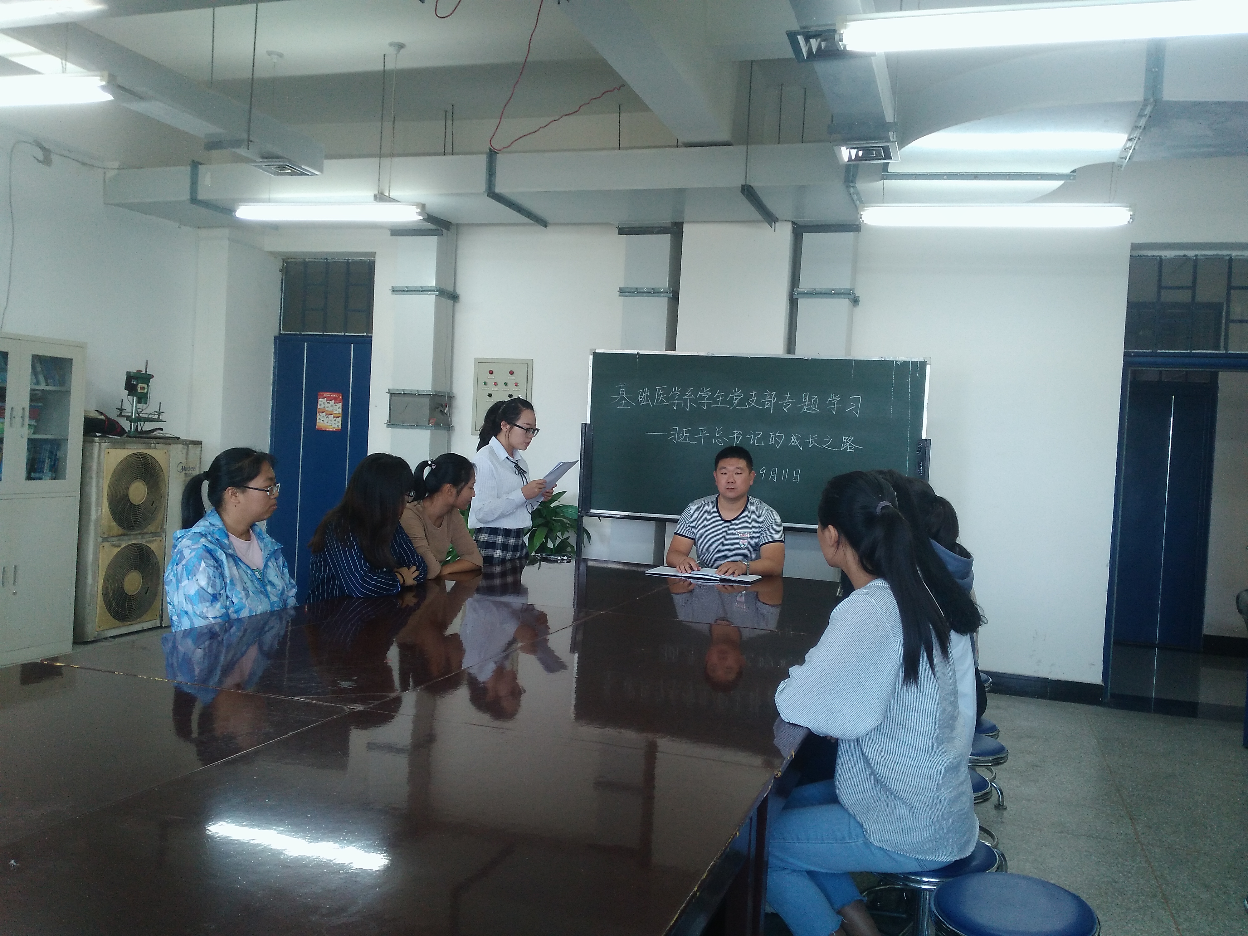 2017年9月11日下午4点30分,基础医学系学生党支部在基础医学系会议室召开专题学习会,集中学习新华社评论员文章《习近平总书记的成长之路》。党支部书记宋国斌老师主持会议,党支部全体党员参加了学习。