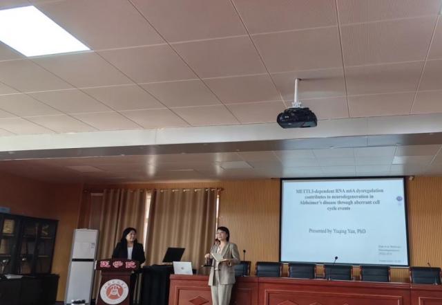 2024年5月14日下午3点,医学院在仁和楼五楼报告厅举行了博士讲座。主讲人闫玉清教授,遗传学博士,属于山西大同大学医学院生化教研室和脑科学研究所,现从事阿尔兹海默症基础研究。讲座题目为:METTL3-dependent RNA m6A dysregulation contributes to neurodegeneration in Alzheimer's disease through aberrant cell cycle events。本次讲座由医学院副院长朱壮彦主持,院长张年萍、部分博士、教授及医学生代表参加。