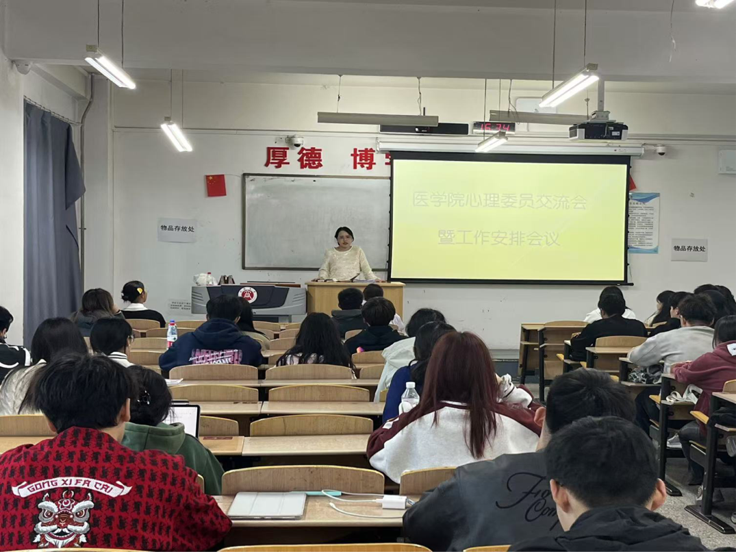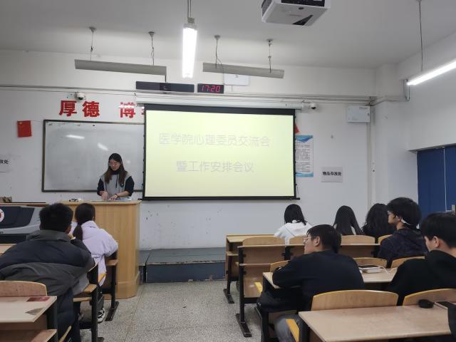 申丽媛首先了解了各班级心理班会的开展情况,也同各班心理委员分享了演讲技巧,同时对医学院一年来的心理工作进行总结并提出新要求。其次,在与同学们进行工作问题的交流后,申丽媛展示了往届的班会成果,要求各班心理委员吸取经验,做好班会策划,以认真负责的态度组织好心理班会。最后,申丽媛了解了《班级学生心情晴雨表》的收集情况,她强调《班级学生心情晴雨表》作为学校掌握班级同学心理健康状况的途径之一,各班心理委员要做到如实填写并及时上交并告知班主任,班主任要及时进行干预并谈心谈话;同时,对所填写内容要给予保密,任何人不得私自将表格中的内容对外透露。