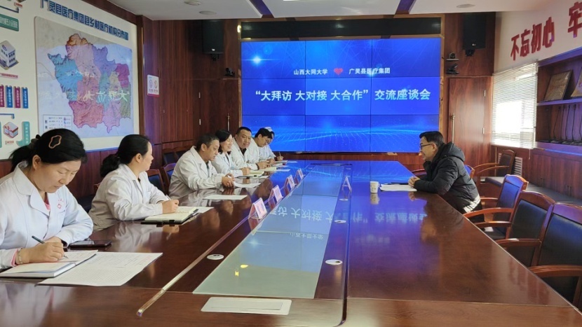 章培军分别于2月13日、2月14日、2月15日和2月20日先后走访了晋河宾馆、大同市农业银行广灵县支行、大同市友谊医院和大同市第六人民医院,分别与各单位负责人进行了座谈交流。在睡眠医学康养、金融科普、人才培养、学生就业、科研合作、社会实践、临床医疗等多方面进行了深入交流和探讨,为进一步合作打下基础。