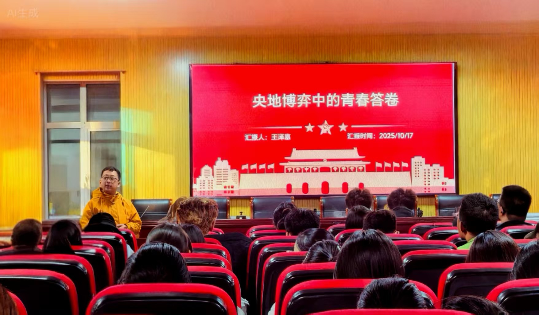 2025年10月17日,医学院在仁和楼五楼报告厅成功举办“央地博弈中的青春答卷”主题团课。本次活动由医学院团委组织,王泽惠同志担任主讲,吸引了近百名学生参与。
