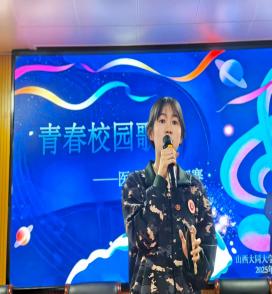 活动筹备细致用心,以蓝色为主色调的舞台背景点缀灵动音符元素,将青春活泼的氛围拉满现场。赛事邀请校内多位音乐学院专业背景的学生干部担任评委,从演唱技巧、舞台表现力等核心维度进行专业打分与点评,全程保障公平公正。