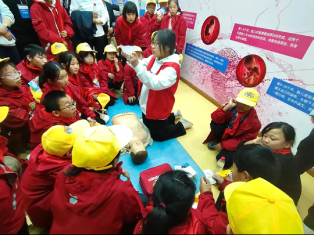 校红十字会的志愿者们,还为师生们认真讲解了心肺复苏与AED的使用,志愿者们通过人体模型,分步演示了心肺复苏流程与AED操作规范,同学们认真学习,提升了应急自救能力。在参观过程中,落阵营中心学校的师生们认真聆听,积极提问,对生命科学的好奇心被充分激发,感受到了生命的奇妙与珍贵。