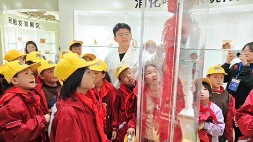为响应校团委关于加强校际交流、科普生命科学知识的要求,4月2日下午1点,医学院热情接待了大同市云州区落阵营中心学校组织的30名师生,引领他们走进人体生命科学馆,开展了一场沉浸式生命科学探索之旅。