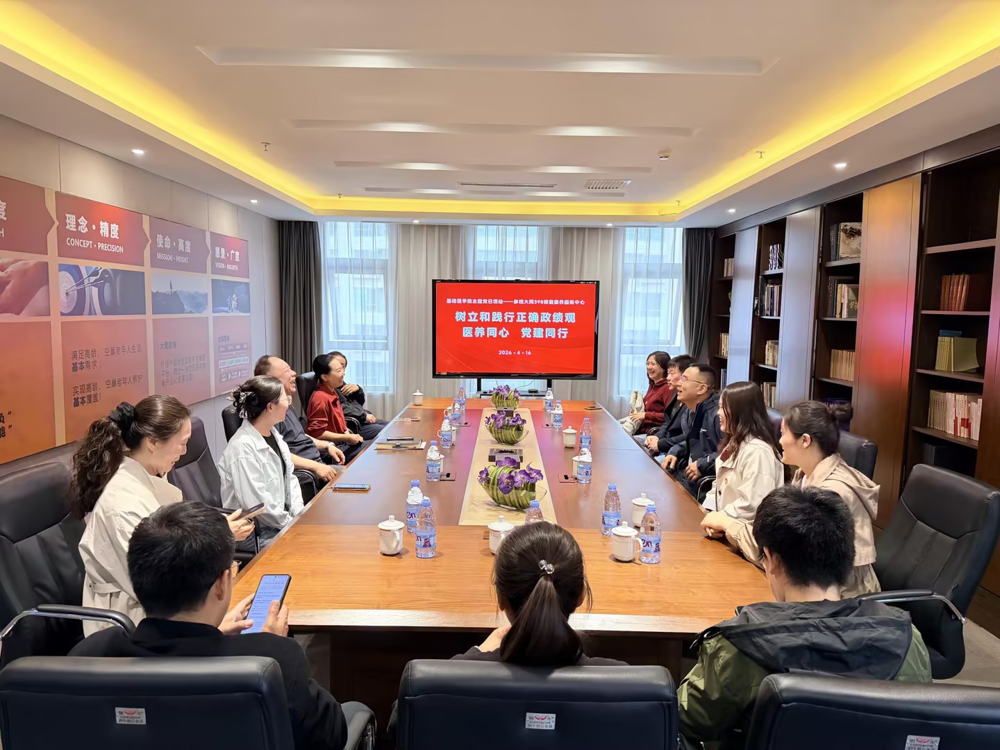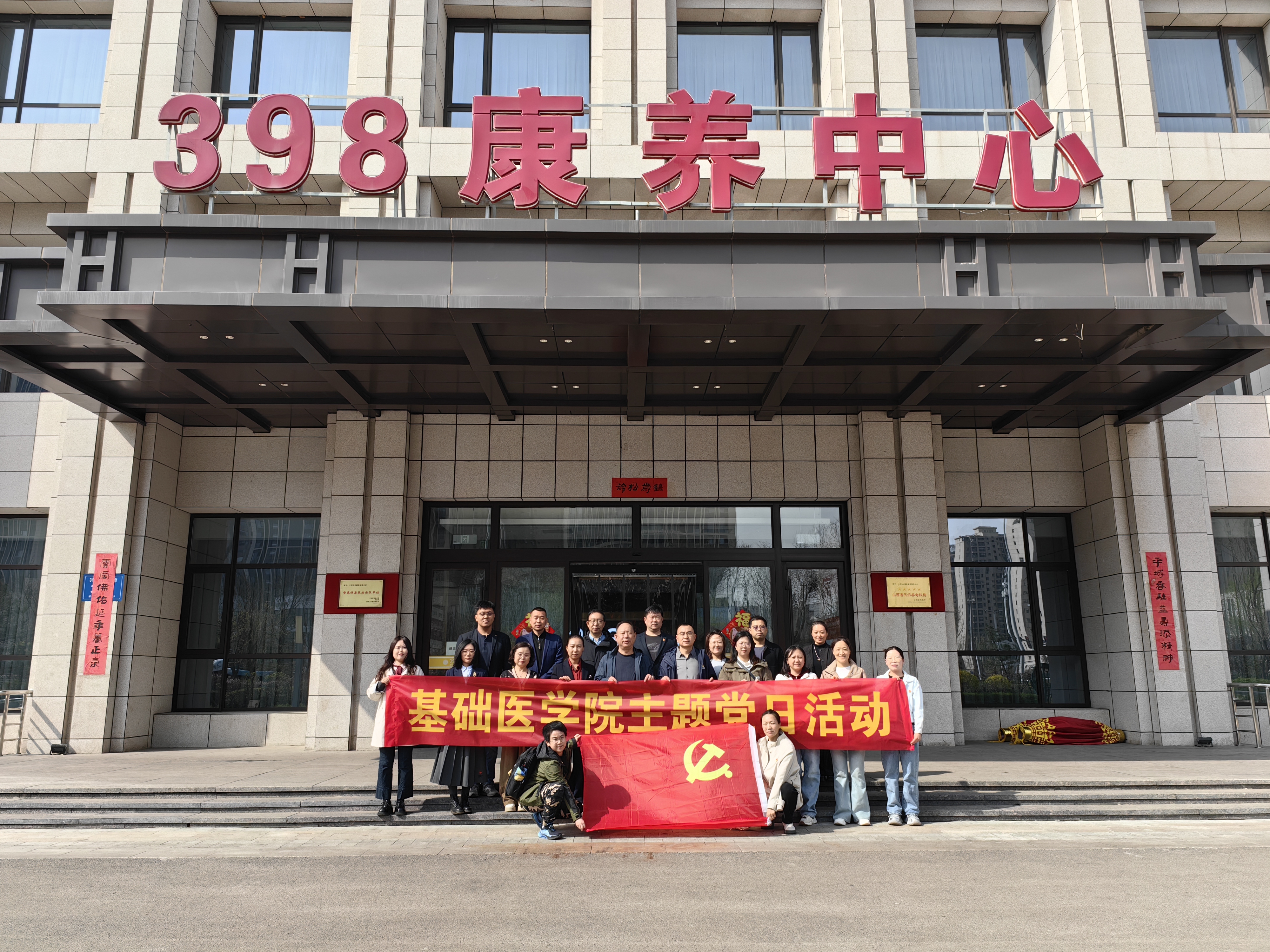 4月16日下午三点,基础医学院党委一行人前往大同398博爱康养中心举行四月主题党日活动,本次活动的主题为“树立和践行正确政绩观 医养同心 党建同行”。