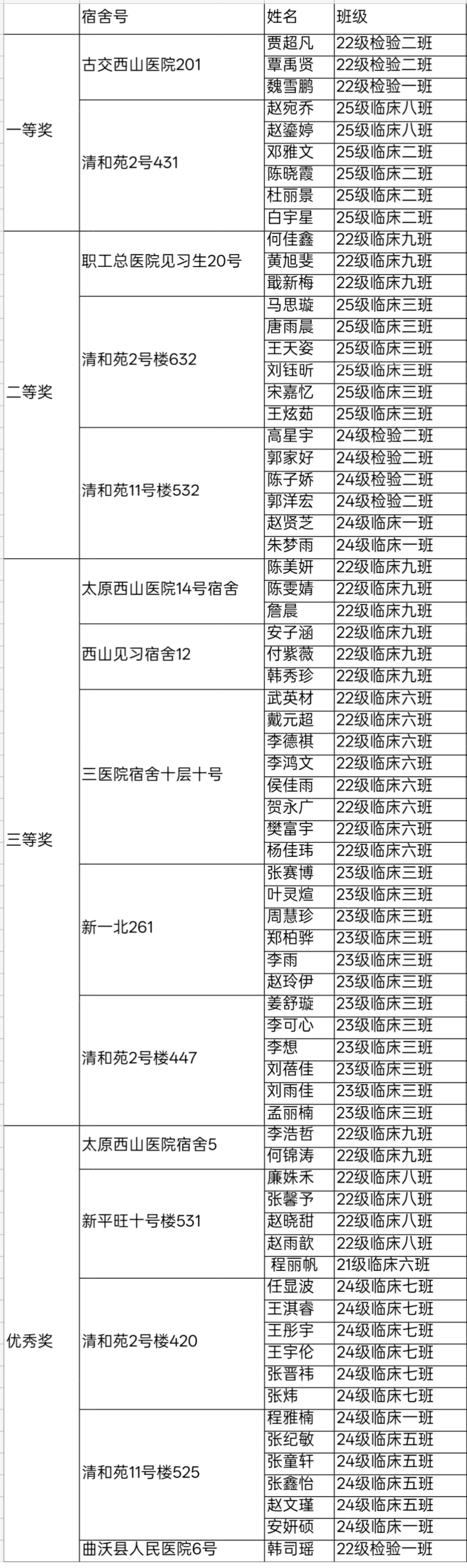 自活动启动以来,全院同学积极响应,纷纷拿起手机记录下宿舍最整洁、温馨的一面。经过初筛与评审团的严格打分,从地面清洁、物品规整、安全规范、文化氛围等多个维度进行了综合考量。最终,获奖名单如下: